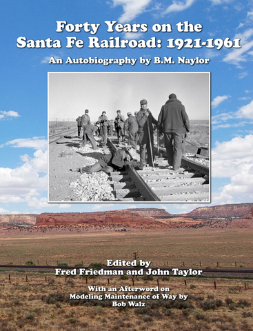 Upon his death, B.M. Naylor, a track maintenance and construction supervisor for the Santa Fe Railway in New Mexico from 1921 to 1961 left a fascinating story of his time with the railway. He was an on-the-ground eyewitness to many of the changes on the Santa Fe, making this book a time capsule for both early railroading and life in New Mexico. His narrative provides rare glimpses into the hard life of a railroad track grant worker and his difficulties as a supervisor and married man with family responsibilities. Naylor is humorous, fair, helpful to others, and always candid, revealing his greatest fears (snakes) and personal pleasures, ranging from fishing to gardening. Naylor’s book adds descriptions of places that are now railroad ghost towns as well as the effort involved in getting to and from such locations prior to convenient, more modern transport. Forty Years on the Santa Fe Railroad will transport the reader to a refreshing different time and place. The book concludes with an afterword by Bob Walz on modeling maintenance of way operations. 132 pages, hardcover.