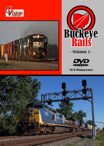 C. Vision announces our latest release, Buckeye Rails, Volume 1! Join C. Vision Productions for a look at the colorful array of modern era diesel action on various CSX and NS lines in the Midwestern lands around northwestern Ohio.  Trackage from predecessor roads Baltimore & Ohio, Chesapeake & Ohio, New York Central and Nickel Plate are alive and bustling with plenty of mainline action. Observe soon-to-be-removed C&O signals protecting the CSX’s Pemberville and Columbus subs, view the distinctive position light signals of the Baltimore & Ohio on CSX’s Toledo Subdivision and witness the many moves that run on these lines daily. Add in some action from Rail America’s Indiana and Ohio, some great action on Norfolk Southern and combine it with a variety of coal, general freight and intermodal moves and you have a great combination of the best this region has to offer. ­Shot during the long, sunny, summer days of 2011 from sunup until the last light of sundown, small “grain elevator” towns, rural Midwestern landscapes and big-time mainline railroading combine to highlight this exciting look at railroading in the Midwest, in “Buckeye Rails, Volume 1”!