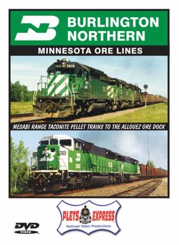 Great Burlington Northern Railroad action that travels across the former Great Northern Railway's Minnesota ore lines. Located on the famous Mesabi Iron Range, see the BN as they load ore cars with taconite pellets at both the Keewatin and Hibbing taconite plants. The BN's long and heavy ore trains then travel over 100 miles through the scenic Minnesota forest to reach their shipping port on the shores of Lake Superior at Allouez, Wisconsin. See the ship Mesabi Miner, a huge 1,000-foot ore boat that's arriving at the Superior Entry for loading at BN Dock 5. Also see a tribute to both the Great Northern Railway and the legendary ship Edmund Fitzgerald. BN diesel power includes GP9, GP10, SD9, SD40-2 and SD60M. Most BN ore trains and the Kelly Lake locals even operate with a caboose. Also, see a few trains of the DM&IR, DWP & WC. Footage era early 1990's from the camera of Bradley A. Plets.