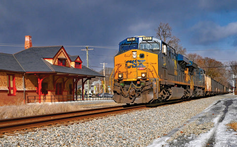 The 2026 CSX Calendar features 13 large views of CSX trains, one scene to a month: January 2026 through January 2027. The calendar opens to an eye-catching 14 x 19-1/2 inches. The calendar grid features number blocks suitable for note-taking.